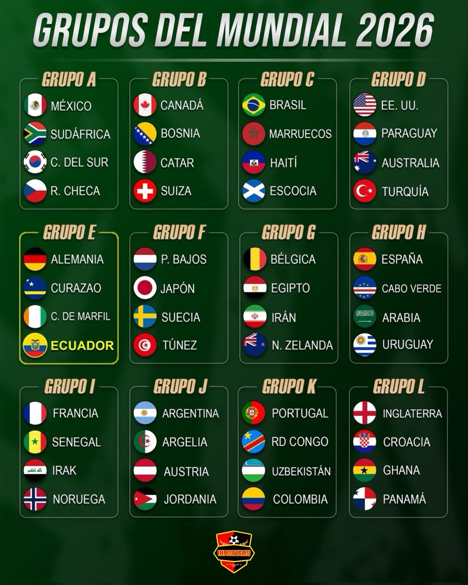 Así las cosas, así quedaron los grupos para el mundial de fútbol que será a mediados de año entre Canadá, México y Estados Unidos.